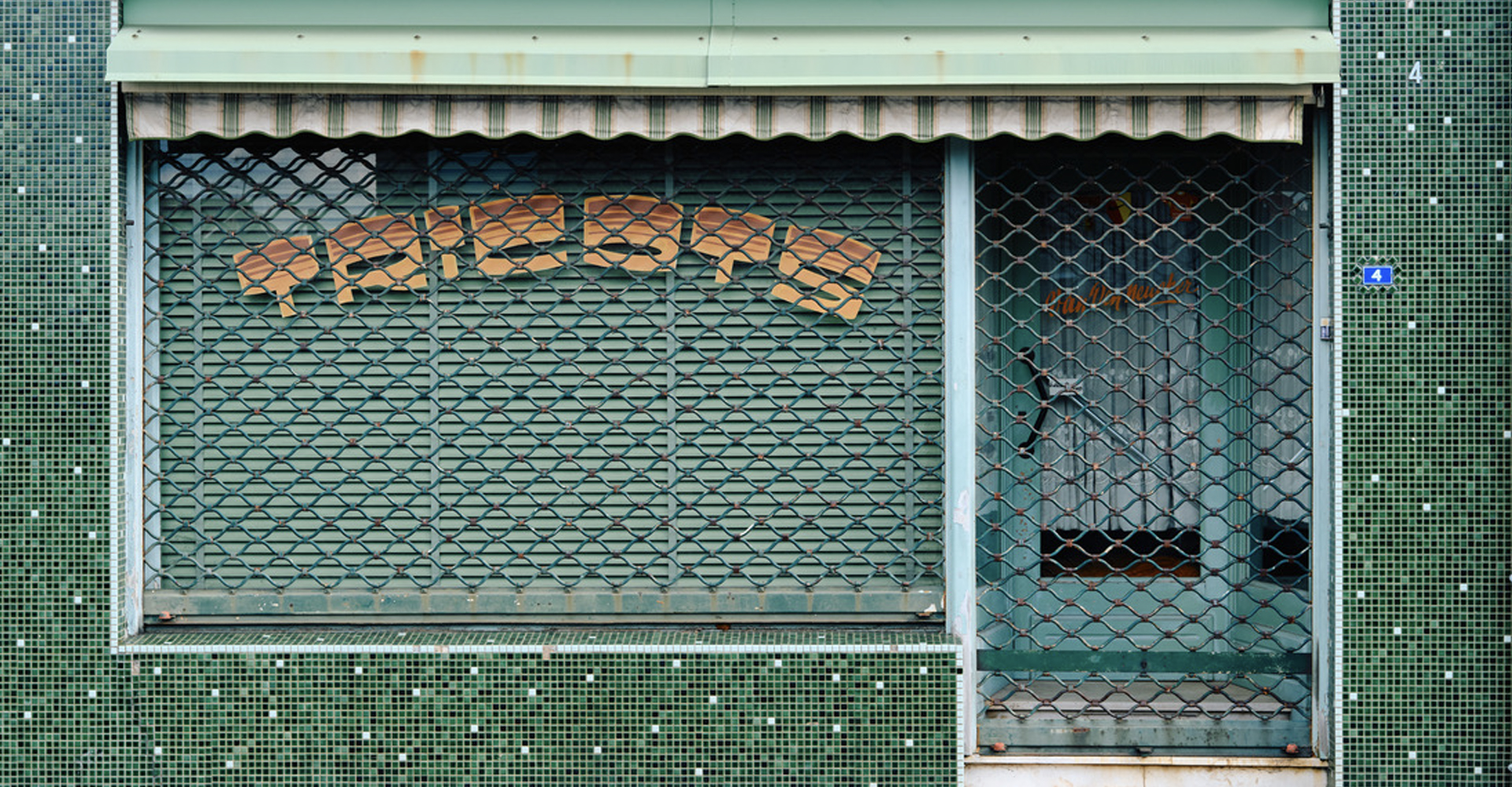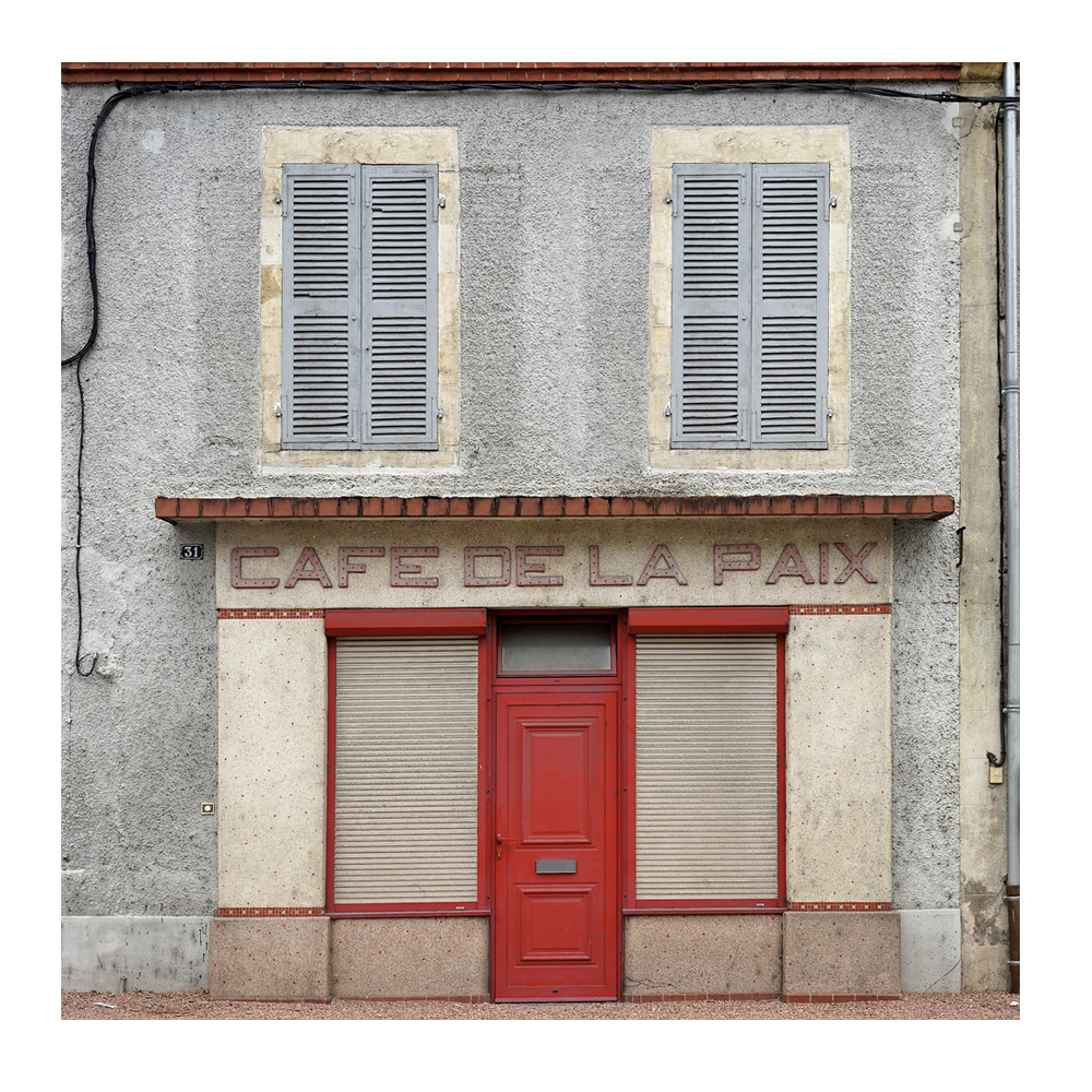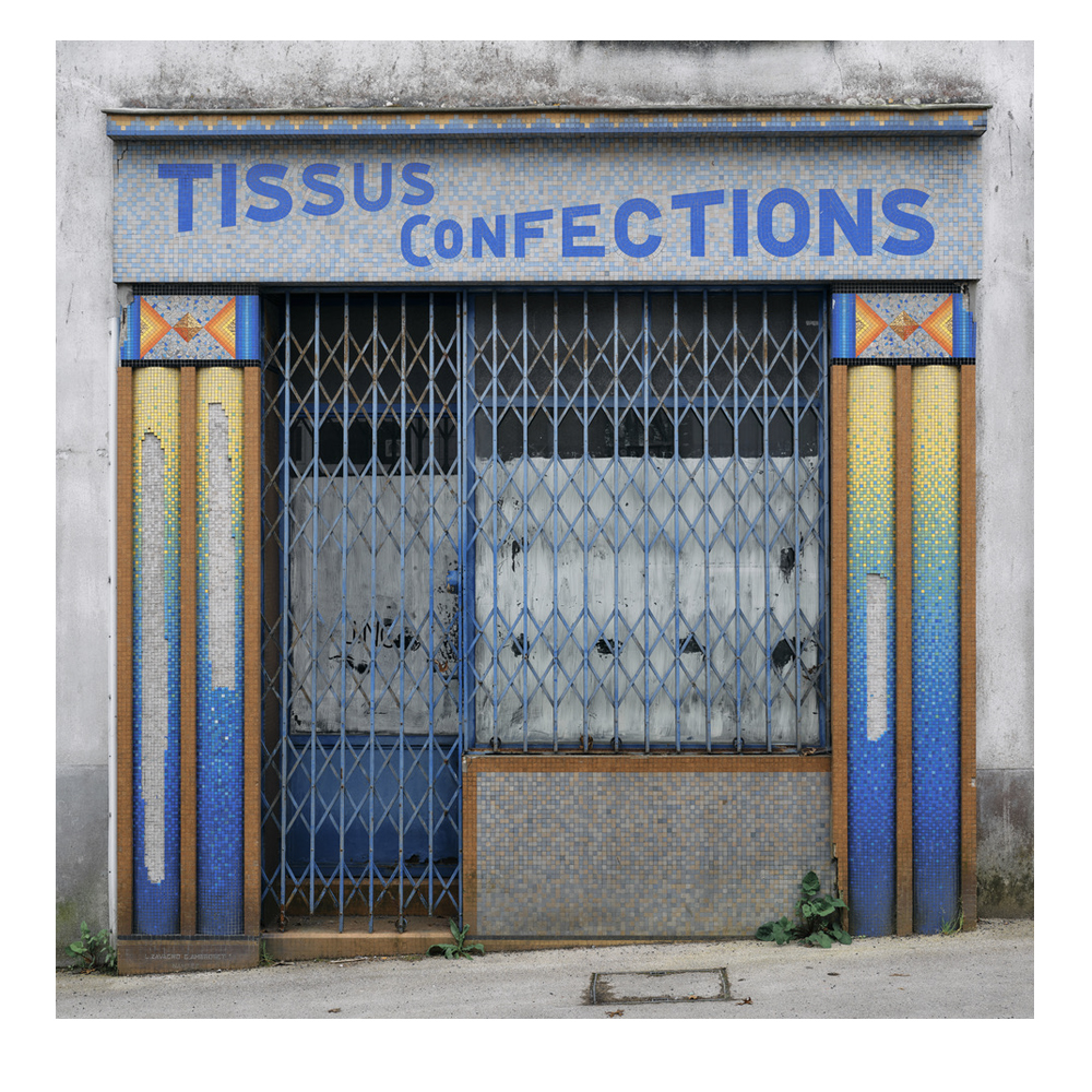 Une frontalité pure qui bouche la vue du spectateur et lui fait violemment ressentir la fin. Tellement qu’on se surprend à penser qu’après tout, ces petits commerces ne sont peut-être qu’une illusion, des décors de cinéma dont les façades peintes seraient soutenues par de simples échafaudages. Comme si on préférait croire que tout ça n’était qu’un rêve. Les plus optimistes, eux, laisseront leur imagination vagabonder. Car cette frontalité qui garde le minimum d’informations, confère aussi une valeur générique et une sorte de virginité aux boutiques : des milliers d’histoires peuvent s’écrire derrière ces façades désolées.