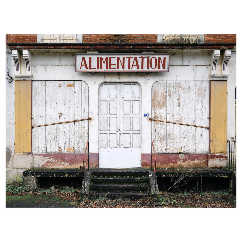 Thibaut Derien a commencé à parcourir la France il y a vingt ans, évitant à dessein les grands axes de circulation et ses sorties bordées par des kilomètres de panneaux criards, d’insipides préfabriqués, de lotissements uniformes et de ronds-points à donner le tournis, que des années de politiques urbaines négligentes ont imposé comme les nouveaux standards esthétiques des zones périurbaines. Il est parti à la recherche des rares petits commerces encore debout mais bel et bien abandonnés, témoins d’une époque, d’un métier, d’un goût, d’une mode. Des petits commerces désertés, laissés aux aléas du temps, qu’il a sélectionnés avec attention parmi la multitude trouvée sur sa route, pour l’émotion singulière qui s’en dégageait, et qui lui ont inspiré cette ville fantôme observant impuissante l’animation de centres commerciaux impersonnels, là-bas, au loin. Pas si loin.